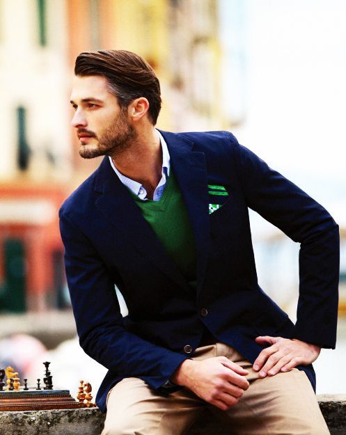 Он выглядит расслабленно, и нисколько не смущается небольшой помятости в костюме. Некоторая морщинистость придает определенный шарм льняному материалу, и этот трюк ты можешь взять на заметку, если предпочитаешь льняные вещи. Карлос Кастильо тоже одет в повседневный блейзер, но уже в земляных тонах с узорами. Оба мужчины надели под свои пиджаки темно-синие рубашки-поло. Что такое блейзер одежда мужской