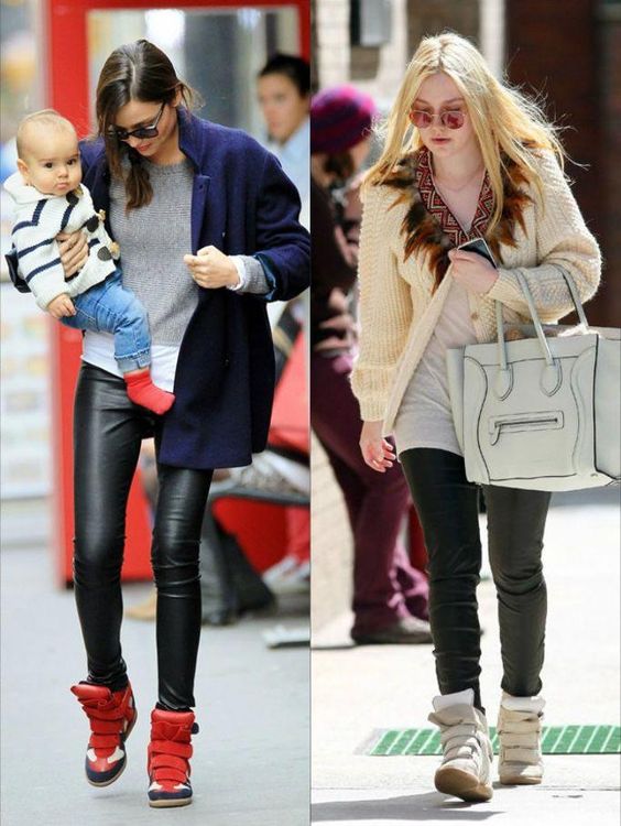 Кеды на танкетке давно пора убрать из гардероба, а сочетание с узкими джинсами неудачно. Оно создает иллюзию, что ноги заканчиваются не обувью, а копытцами. Если кеды на танкетке для вас важны, носите их с клешеными джинсами классической длины — это хорошая альтернатива обуви на каблуках.