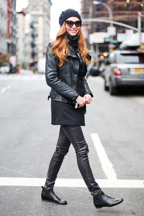 Если ты не байкер и не девушка байкера, такое сочетание лучше приберечь для тематических вечеринок в рок-н-ролльном стиле.