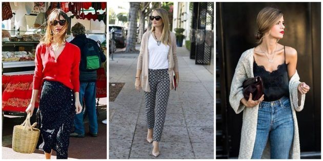 Женщинам проще интегрировать кардиган в гардероб. Во-первых, можно использовать идеи, подходящие мужчинам. Во-вторых, кардиган хорошо комбинируется не только с брюками и шортами, но и с платьями и юбками. Осторожно стоит подходить к его использованию в спортивных и вечерних нарядах. Удивляет универсальность этой вещи: на красной дорожке Каннского фестиваля или в офисе с строгим дресс-кодом кардиган неуместен, но в большинстве других ситуаций подходит.