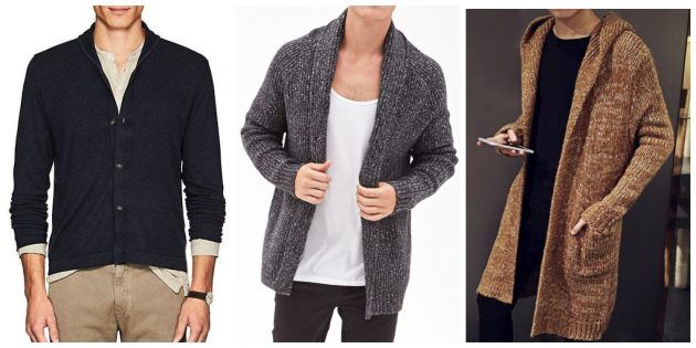 У мужчин выбор длины кардиганов ограничен, но не нужно беспокоиться о сочетании с юбкой. Кардиган не должен выглядывать из-под куртки.