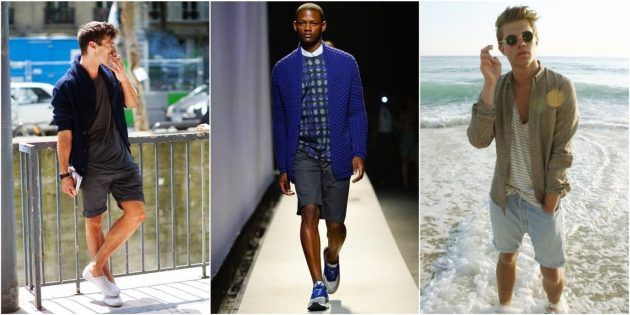 Кардиган может стать альтернативой вездесущей толстовке на молнии, если вы идете на прогулку или едете за город. Проще всего составить образ с городскими шортами, а не с пляжными или спортивными, но бывают и удачные исключения.