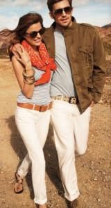Модели чинос, берущие истоки в военной форме, претерпели значительные усовершенствования. Они стали неотъемлемой частью кэжуал стиля. Практичные белые брюки чинос гармонично смотрятся в суете стремительных будней, на дружеской вечеринке, загородном пикнике. Их отличает свободный покрой, высокая талия, зауженность внизу. Большинство моделей дополнены стильными отворотами. Элегантные светлые брюки слим покроя представлены в коллекциях Ralph Lauren .