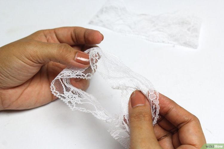 - выкроить по поперечной нити из материи 2 ленты шириной в 4 см;