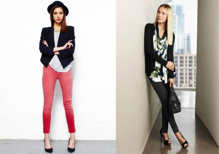 Для стильных повседневных образов существует множество вариантов. Обычно скинни сочетают с удлиненными свободными вещами, но их можно комбинировать и с короткими приталенными моделями.