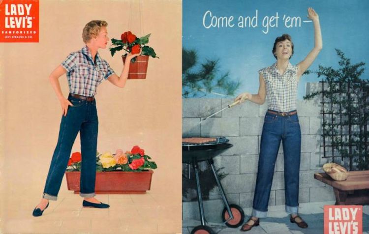 Первые женские джинсы появились в 1934 году благодаря компании Levi’s. Мода на брюки, похожие на мужские, быстро завоевала популярность. Первая модель, Lady Levi’s 701, имела прямой крой и завышенную талию.