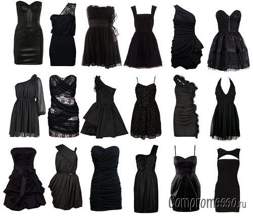 Платье черного цвета — ключевой элемент женского гардероба, требующий внимательного выбора. Изначально оно имело полукруглый вырез, длинные узкие рукава, длину до середины колена и облегающий силуэт. Классическая модель отличается элегантностью, но подходит лишь женщинам с идеальными формами.