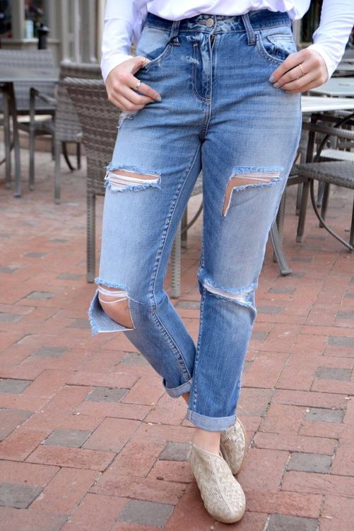 Не рекомендуется носить такие джинсы на светские мероприятия, театры или выставки. Внешний вид бойфрендов должен быть слегка поношенным, а в талии они должны быть немного свободными.