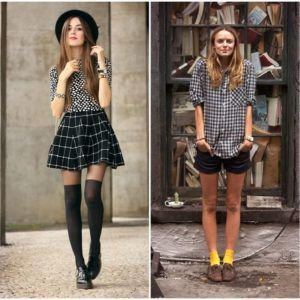 - Сапоги на высоком каблуке можно сочетать с короткими юбками, если верх (кофта или блузка) будет закрытым. Обувь на плоской подошве более универсальна и подходит как для откровенных нарядов, так и для повседневной одежды.