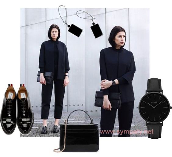 - Образ для офиса дополняется небольшими серьгами, часами и клатчем-конвертом. Если хочется еще каких-то украшений – подберите либо небольшую металлическую брошь на лацкан жакета, либо низку жемчуга на шею, либо тонкую цепочку с миниатюрной подвеской (не крестик!).