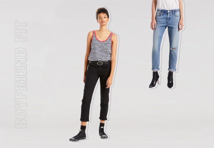 Boyfriend fit – силуэт «бойфренд». Женская модель, создающая впечатление случайно надетых мужских джинсов. Модель отличает свободный прямой крой, иногда с зауженными и подвернутыми штанинами, заниженная посадка.