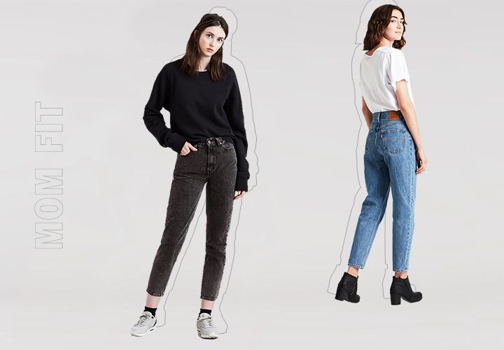 Mom fit, мom jeans – мамин силуэт, мамины джинсы. Универсальная модель с завышенной посадкой и свободным кроем. Выбор активных и практичных женщин конца 1980-х — начала 1990-х годов – женщин поколения, которое вырастило своих детей, давших название модели в новое время. Удобство, комфорт и непринужденный стиль джинсов пришелся по вкусу многим домохозяйкам 80-х, но не только им: в джинсах ходила даже супермодель Кейт Мосс.