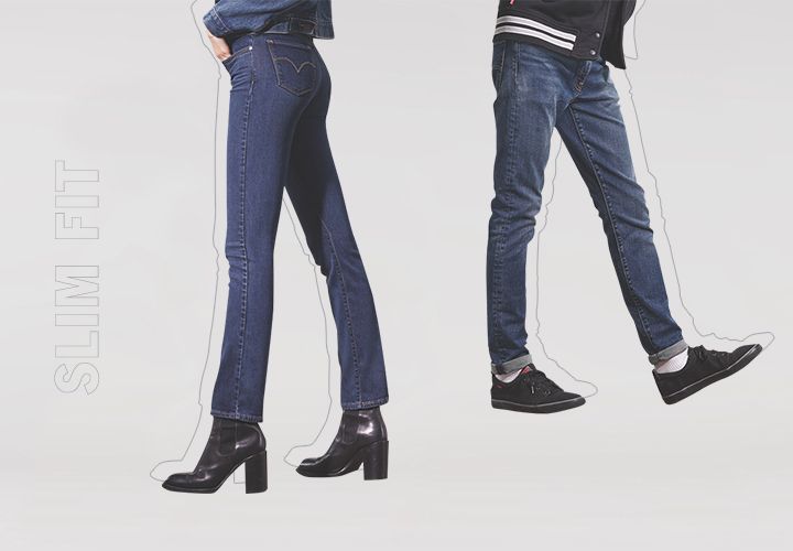 Slim fit – стильный силуэт с зауженными джинсами по всей длине. Модели, сужающиеся только в области щиколоток, называются tapered cut (коническая форма). Слимы облегают фигуру, но не слишком плотно, что помогает скрыть недостатки. Хотя носить их может быть не совсем удобно из-за плотного денима без лайкры, они визуально стройнят и удлиняют ноги. Эти джинсы подходят для различных типов фигур. В настоящее время слимы популярны как у мужчин, так и у женщин, особенно после демонстрации супермоделью Кейт Мосс в 2004 году.