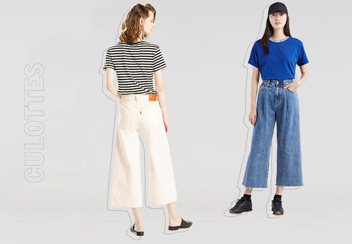Кюлоты — это широкие укороченные брюки. В 18 веке этот термин обозначал короткие облегающие штаны на завязках, которые носили мужчины из высшего общества. Со временем кюлотами стали называть женские брюки, доходящие до середины голени. Впервые они появились в 30-х годах 20 века, разработанные для женщин, занимающихся теннисом. Позже кюлоты вошли в повседневный женский гардероб: сначала в 60-х годах на фоне феминистского движения, затем в 90-х, став символом практичного и женственного стиля.