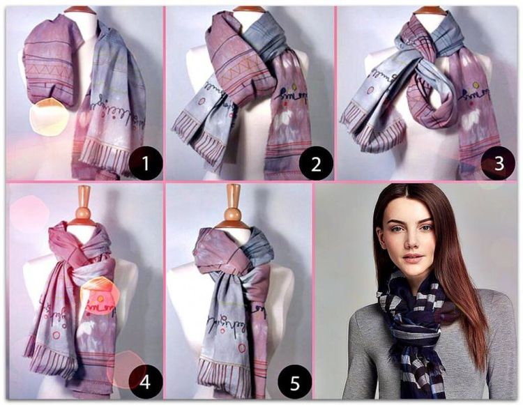 Также обратите внимание на другие интересные способы, представленные на этих пошаговых фото, как красиво завязать палантин.
