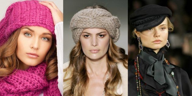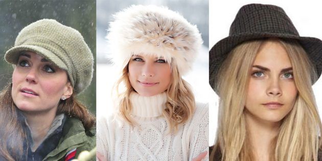 Нужны шапки, прикрывающие лоб. Главное, чтобы они были не слишком обтягивающими. Если у вас треугольное лицо, то ваш выбор — шляпы с небольшими полями, милые шапки с ушками, береты с посадкой на лоб или набок, пушистые меховые модели. Ассиметричный крой приветствуется.
