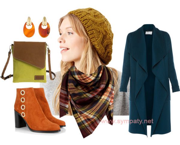 - Французский стиль – прямое пальто или пальто-трапеция, туфли или ботильоны, небольшой берет, сумочка на длинном ремешке.