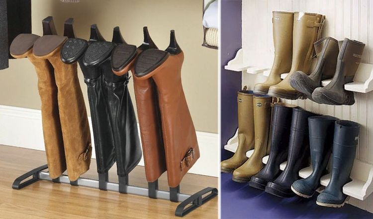 | В вертикальном положении (на полке) | Экономит место, удобен для небольших сапог | Может привести к деформации голенища, если сапоги тяжелые |