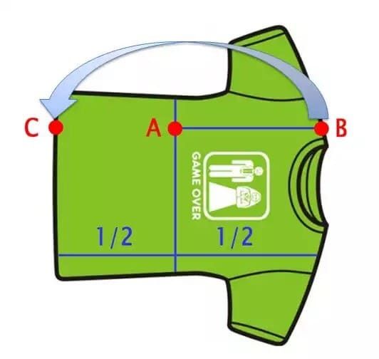 - Условно разделите футболку пополам и отметьте перпендикуляр через центр плеча.