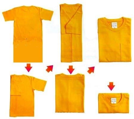 Метод «Японская складка»: В Японии существует специальный метод складывания одежды, который позволяет минимизировать количество складок. Он включает в себя аккуратное складывание футболки по частям и использование техники «скручивания», что помогает сохранить форму и предотвратить помятости.