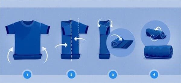 Как сложить футболку так, чтобы она занимала минимум места и не помялась? Существует простой метод — свернуть одежду в рулон. Доставая майку из багажа, вы сможете сразу надеть ее без глажки. Этот способ также подходит для хранения трикотажных вещей в ящиках.