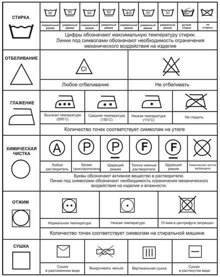 - стирка запрещена или разрешена ручная/машинная стирка;