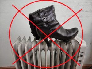 Можно ли ставить мокрую обувь на батарею?