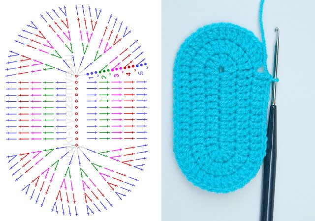 ▪ Вяжем подошву по схеме. Практически все детские пинетки начинают вязать с подошвы.