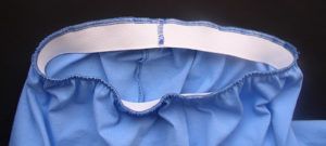 На резинке вдоль бокового или заднего шва сделайте надрез. Глубина определяется во время примерок. Главное – не повредить ткань.