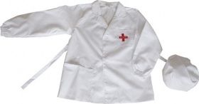 - Белая рубашка. Рубашка должна быть немного велика, что бы она была длинной и при этом была возможность одевать ее на другую одежду, как халат врача. В данном случае необходимо подрезать рукава, чтобы они не болтались. Лучше всего в манжеты вставить резинку. Если рубашка свободно сидит на ребенке, то пришейте на уровне талии две завязки, которые можно завязать сзади. Так костюм будет больше походить на настоящий. Кроме того, замечательно, если вы сможете дополнить халат большими карманами. На груди поместите красный крест.