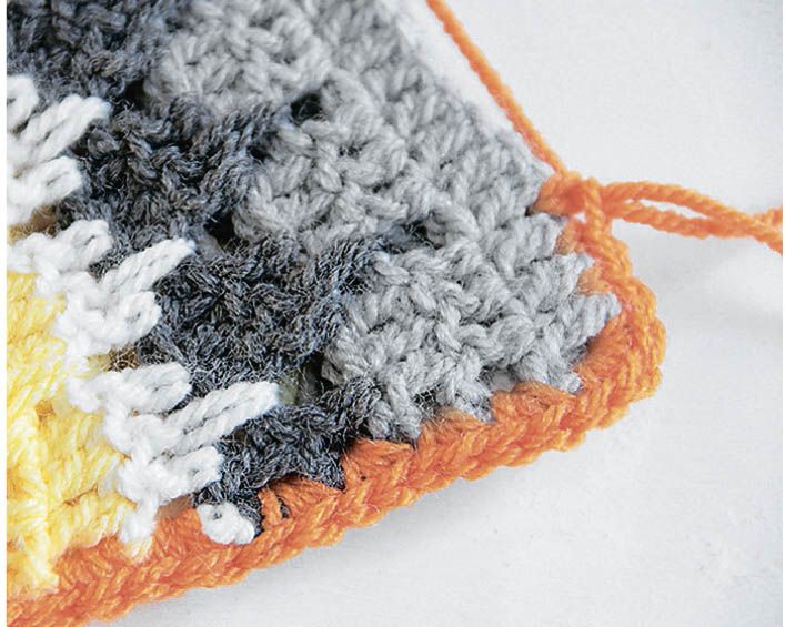 Переднюю и тыльную стороны сложите изнаночными сторонами внутрь и, начиная с левого верхнего угла, соедините стороны и нижний край столбиками без накида.