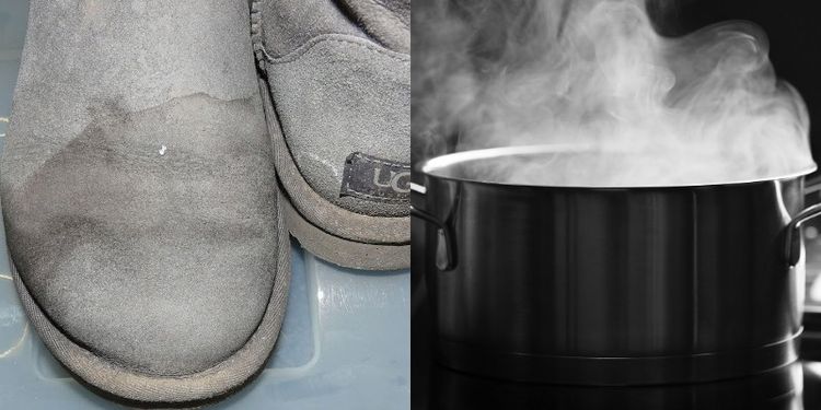 - Очистка замши от соли: Поставьте кастрюлю с водой на плиту и, дождавшись закипания, подержите замшевые сапоги над паром. Затем аккуратно расчешите их специальной щеткой для замши. Не забудьте высушить обувь после процедуры.