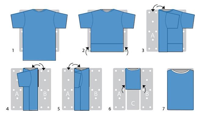 Чтобы увидеть, как быстро складывать рубашку (или футболку), посмотрите наше видео и попробуйте повторить процесс.