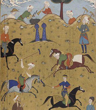 В середине XIX века поло стало популярным в Англии. Британцы, очарованные восточной игрой, начали проводить соревнования с 1871 года. Участники носили длинные рубашки, брюки, защитные шлемы, перчатки и высокие сапоги.