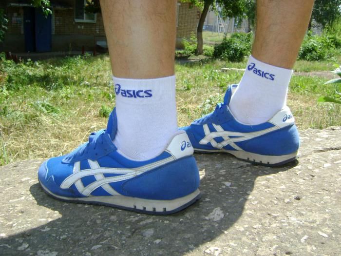 С кроссовками это классическое сочетание не требует особых рекомендаций. С кроссовками можно и нужно носить спортивные носки разной высоты. Белые носки подходят к кроссовкам любого цвета, цветные хорошо смотрятся с черными.