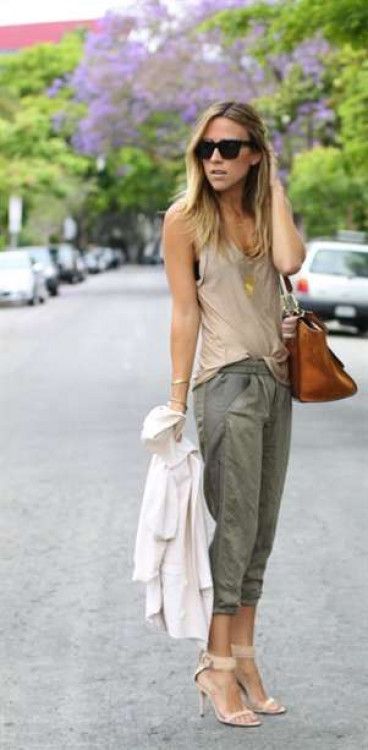 В жаркое время года самыми популярными считаются модели укороченного кроя и из легких материалов – хлопка, льна, тонкого трикотажа и денима, шелка. Кроме того, в тренде яркий и принтованный дизайн, который поможет сделать образ привлекательным и броским. Если вас интересует, с чем носить женские джинсовые джоггеры и другие фасоны из тонких тканей, лучше всего остановиться на лаконичном открытом верхе – майке-борцовке, простой футболке, коротком топе в бельевом стиле или с воланом. Завершение должно быть открытым, но подойдут и облегченные кроссовки или кеды. С какой обувью носить брюки джоггерыС чем носить женщинам? (читать далее…)На то, чтобы составить торжественный образ, придется потратить немного больше времени. Особое внимание нужно уделить сочетанию тканей и фасонов. Джоггеры, в которых можно выйти в свет, должны быть выполнены из более плотной и благородной ткани, чем трикотаж. Допускается наличие различных декоративных элементов: страз, бисера, пайеток. Обязательное условие составления вечерних образов со штанами подобного фасона — обувь на высоком каблуке. Наверх можно надеть блузку, красивый гольф, топ. Советы по созданию стильных образов с джоггерами