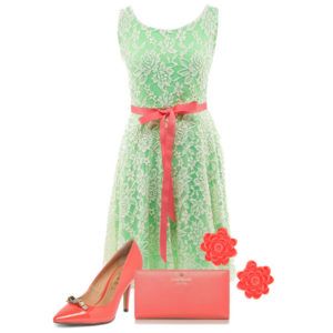 - для летнего или праздничного образа подойдут золотистые туфли или аксессуары. Персиковые и розовые детали также хорошо сочетаются с зеленым.