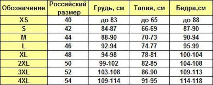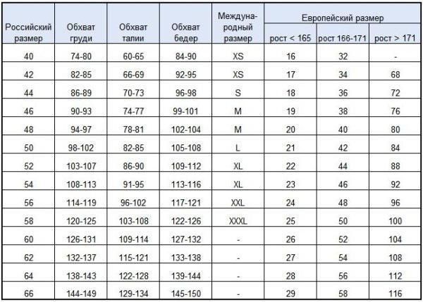 Соответствие международных и российских размеров