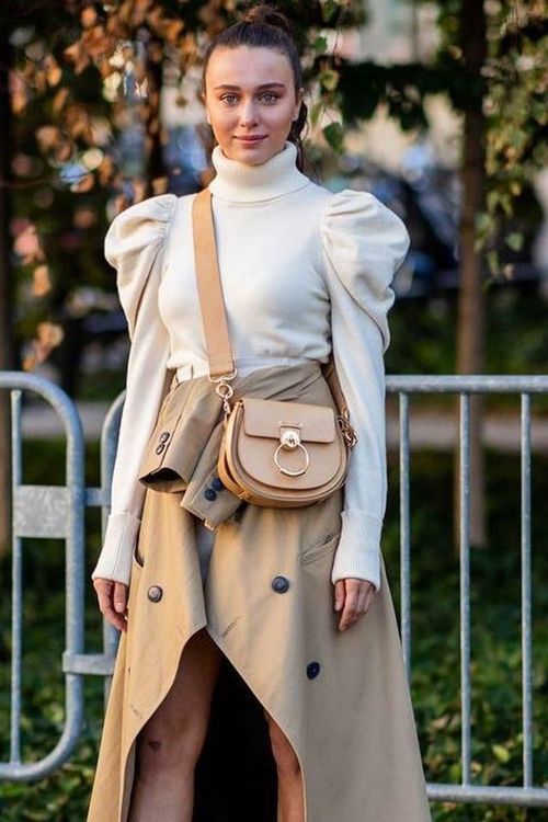 Э то мой личный фаворит, потому что, когда вы чувствуете, что свитер подавляет ваш наряд и вы становитесь похожими на плюшевого медведя, ремни и поясные сумки — ваши лучшие друзья. Есть так много способов, которые вы можете попробовать: заправьте переднюю часть свитера в брюки и добавьте ремень на брюки или на сам свитер, чтобы подчеркнуть талию; наденьте юбку и поверх объемного свитера поместите вашу любимую поясную сумку на талию или по диагонали. Фантазируйте!